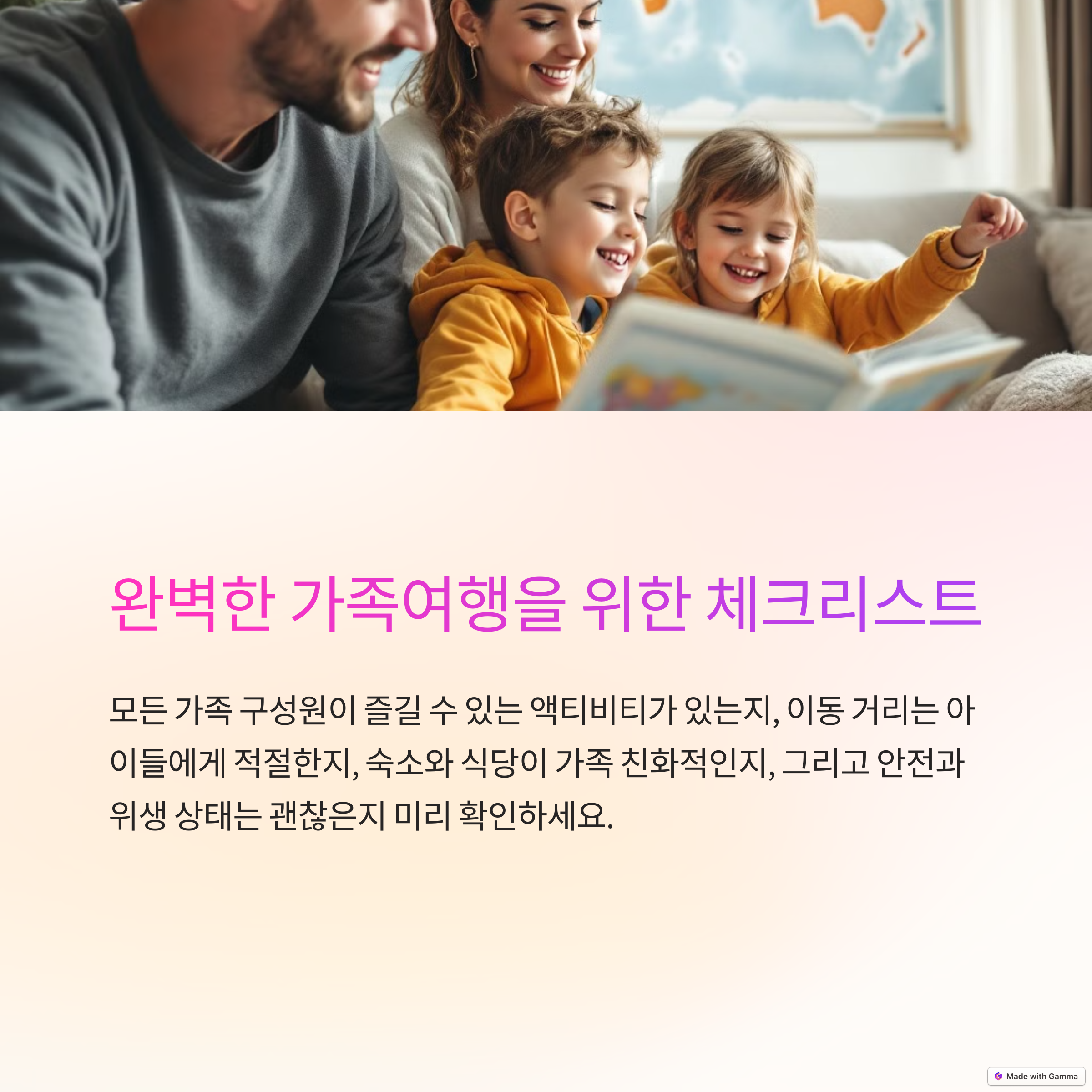 가족 여행을 계획할 때는 모든 구성원이 편하게 즐길 수 있도록 꼼꼼하게 준비하는 것이 중요해요. 다음 사항을 미리 고려해 보세요: