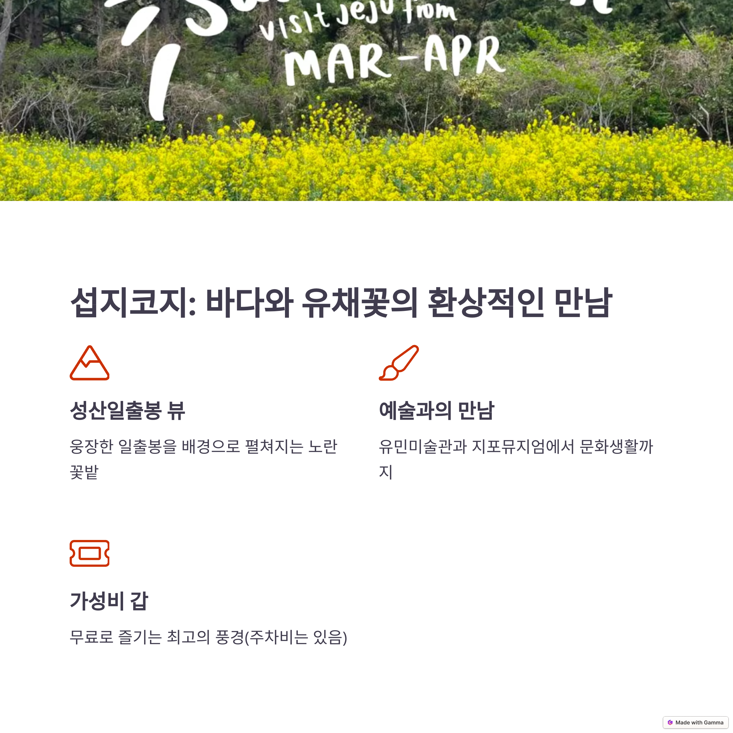 | 특징 | 바다+유채꽃+성산일출봉 조합 |
