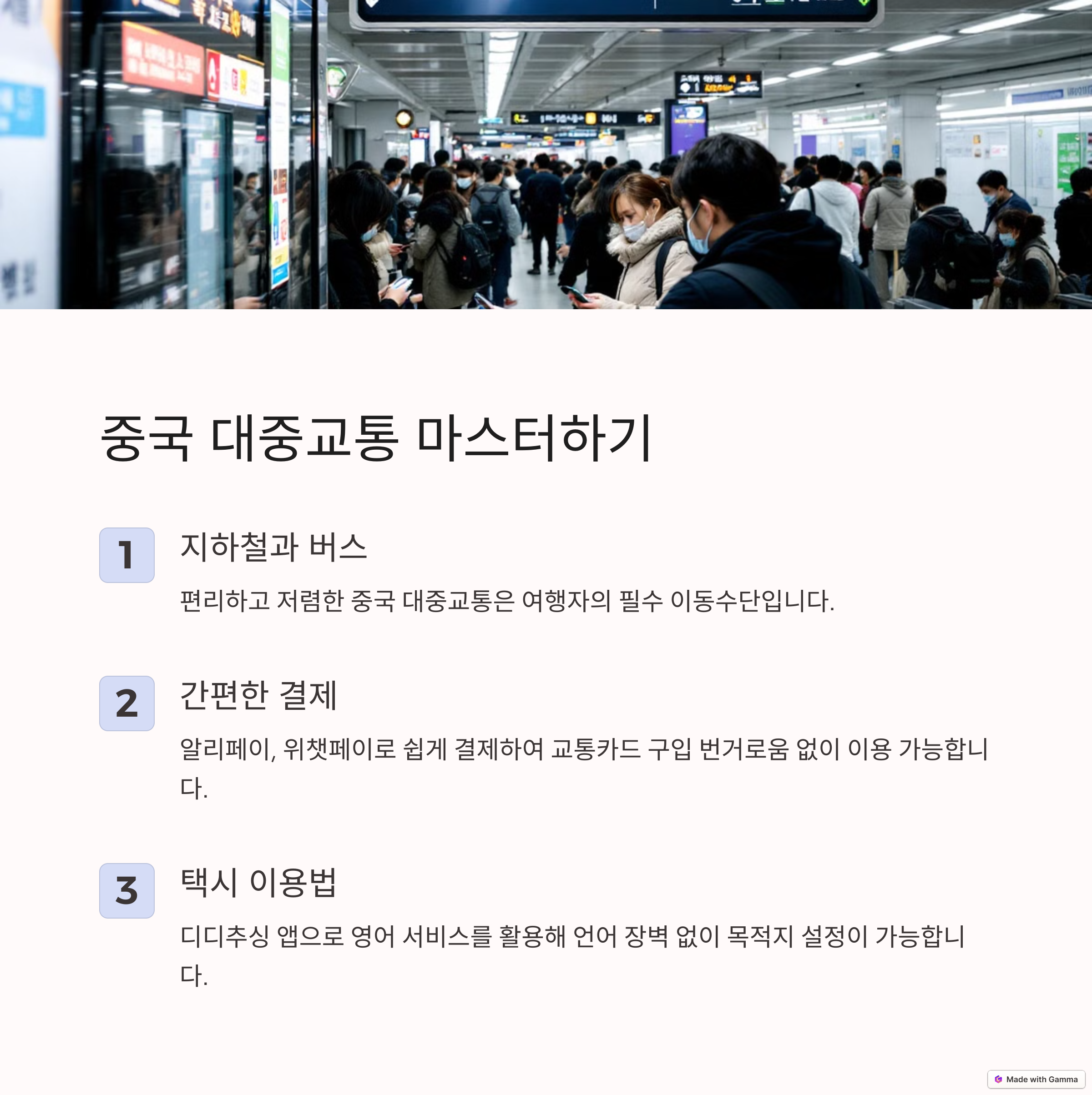 안녕하세요, 여행을 사랑하는 여러분! 중국은 광대한 대륙과 다양한 문화가 공존하는 매력적인 나라입니다. 하지만 언어 장벽과 현지 시스템 차이로 인해 예상치 못한 어려움을 겪을 수도 있죠. 저도 처음 중국을 여행할 때 교통수단 이용법이나 모바일 결제 시스템에 적응하는 데 꽤 시간이 걸렸어요. 그래서 오늘은 여러분이 중국을 더욱 편리하고 즐겁게 여행할 수 있도록, 교통, 문화, 유의사항까지 한눈에 정리해보려고 합니다. 함께 떠나볼까요?