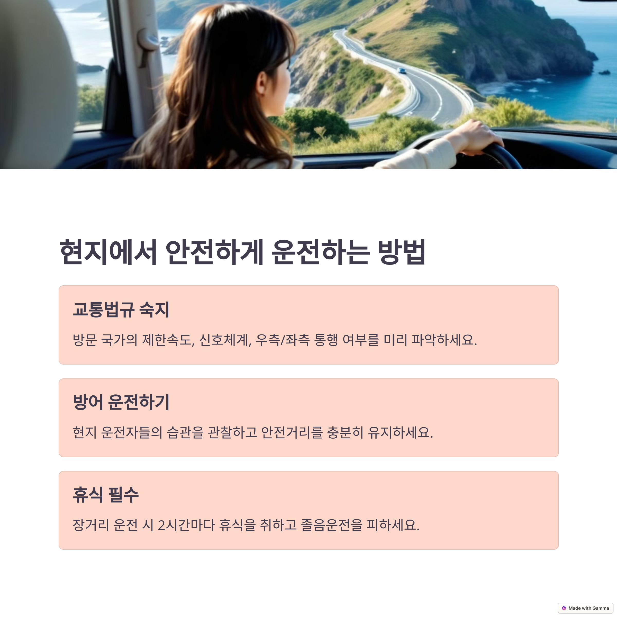 사전 준비가 제대로 되어 있으면 해외에서도 편안하고 안전하게 운전할 수 있습니다. 🚗