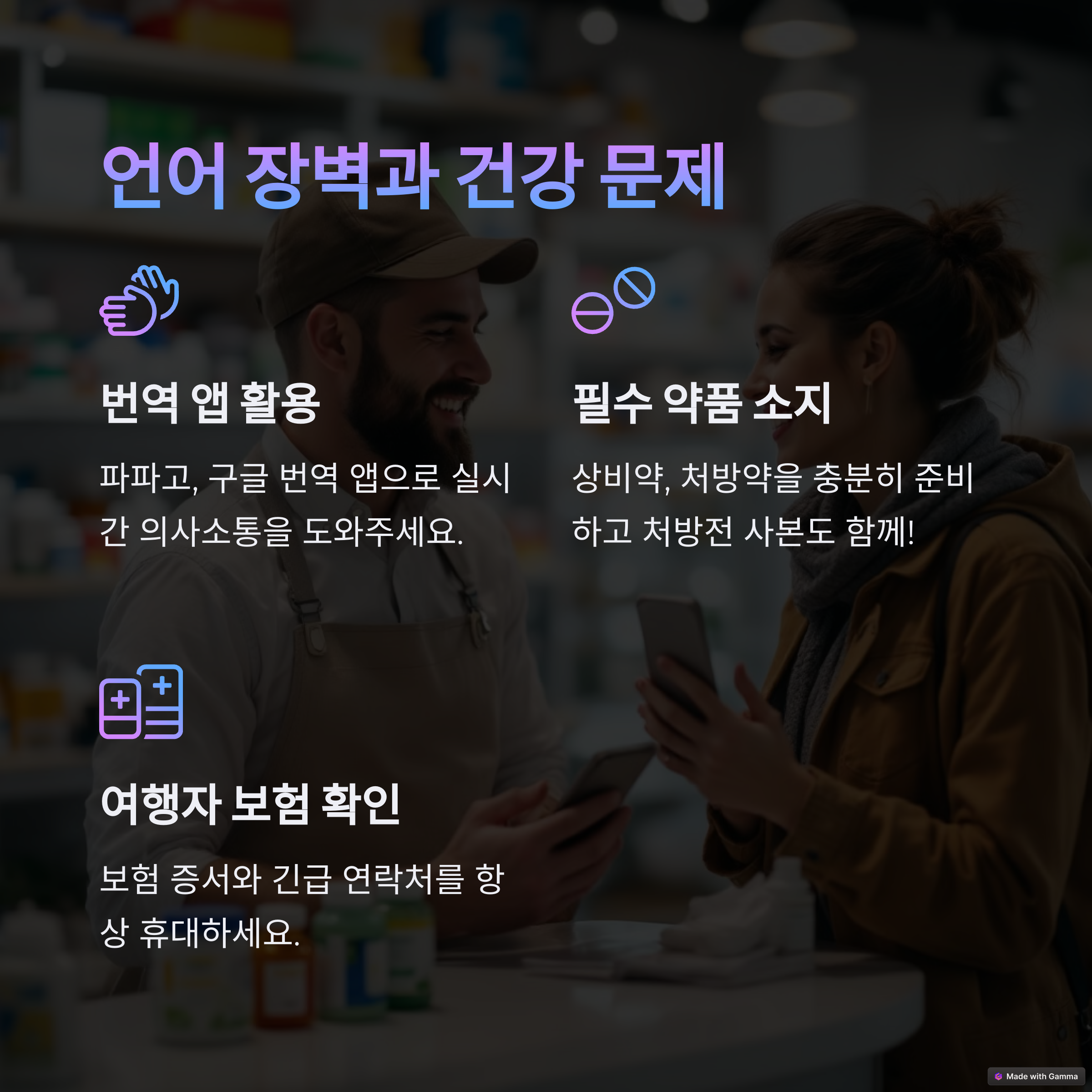 팁: 현지 병원과 약국 위치를 미리 확인해 두고, 응급 연락처를 숙지하세요.
